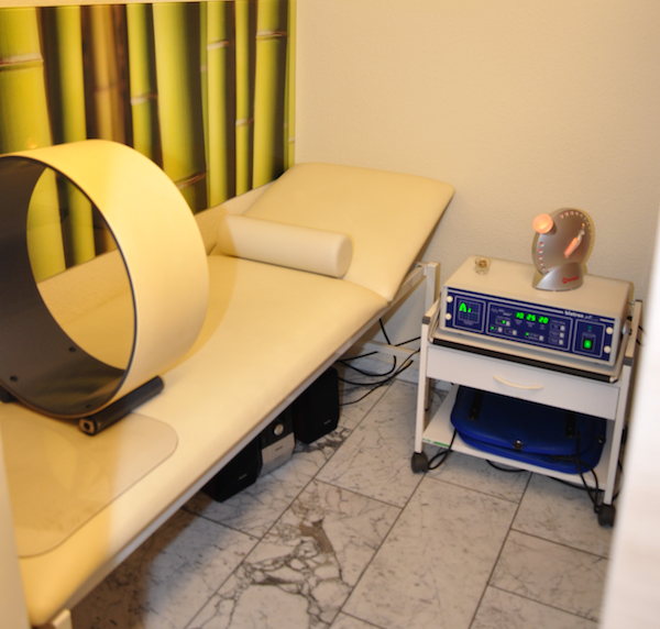 Bei dieser völlig schmerzfreien Behandlungsmethode werden die entsprechenden Gelenke in einer Rundspule mit 60 cm Durchmesser gelagert und dem Pulsierenden Magnetfeld ausgesetzt.